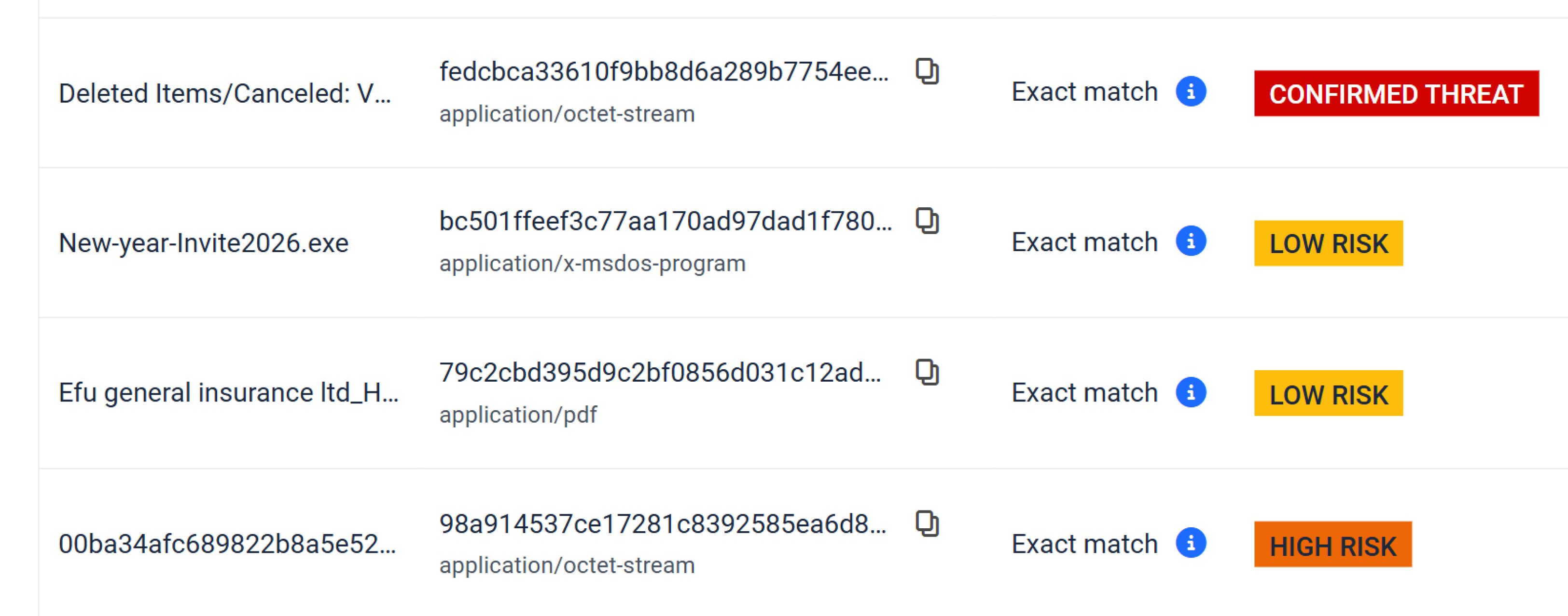 - E-posta ve Kimlik Avı Analizi Doğruluğu - Görüntüleri gömülü URL'lerle doğru şekilde ilişkilendirmek, metin tabanlı ekleri desteklemek ve birden fazla dilde eylem çağrısı algılamasını geliştirmek için EML ayrıştırma iyileştirildi.