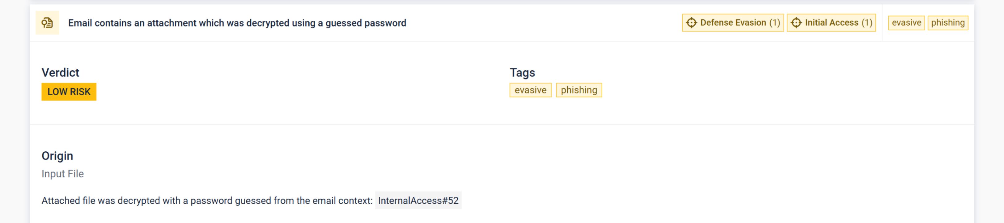 - Şifrelenmiş Belgeler - Kimlik avı yoluyla gönderilen şifrelenmiş dosyalar için yedekleme mantığına sahip çok adımlı parola kurtarma özelliği sunarak, korumalı Office ve PDF belgeleri için gelişmiş şifre çözme özelliği.