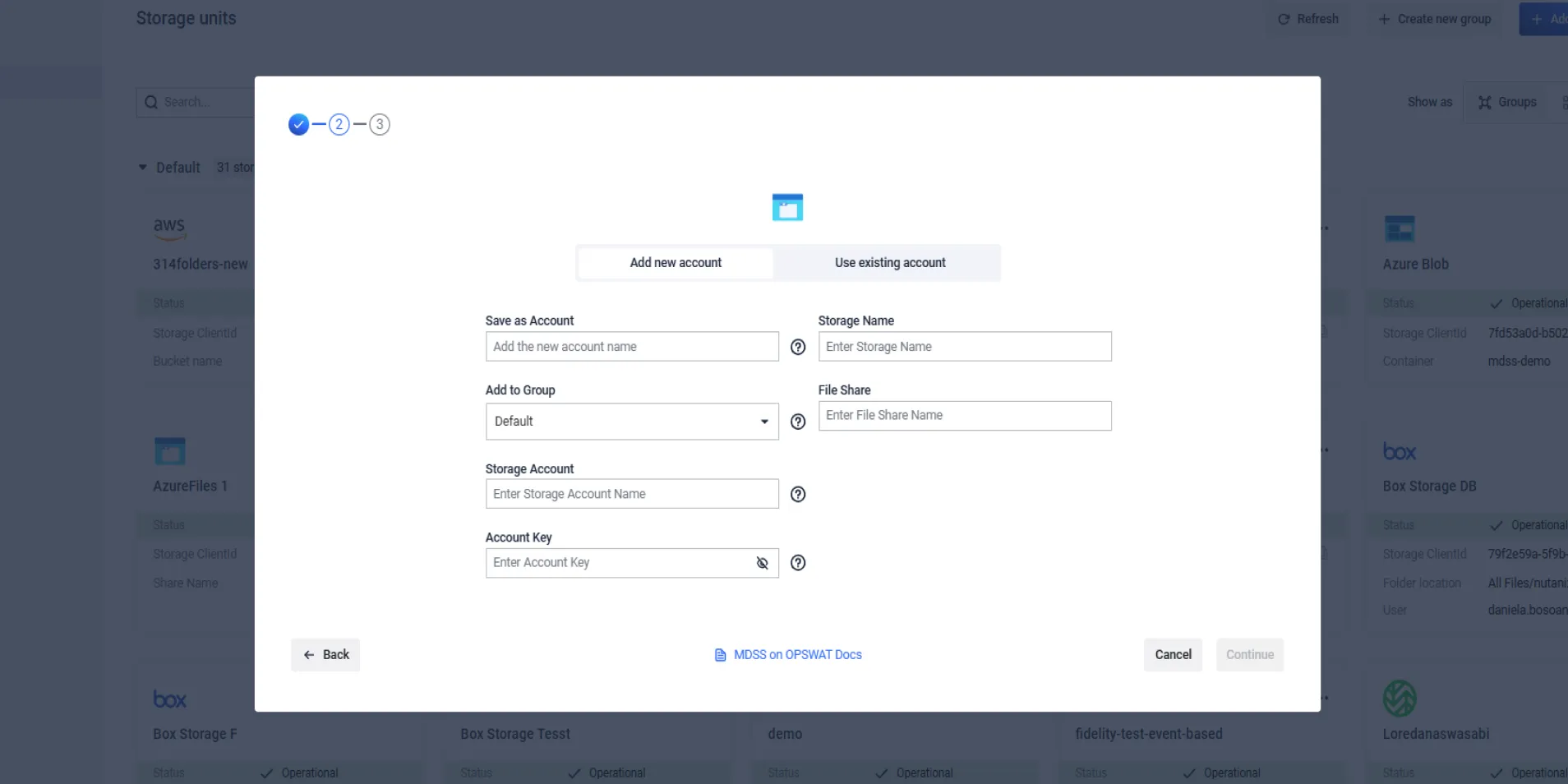 Azure Dosya Türü depolama birimi ekleme MetaDefender Storage Security